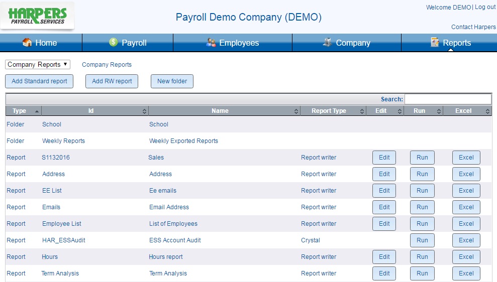 Among the many intuitive features of PayrollForward, the report writer becomes a “can’t live without” item. PayrollForward allows custom reports to be generated easily on demand by payroll and HR. You will be able to write reports on the fly and export to any Microsoft application: Excel, CSV, Word etc. It’s as easy as: point, click and simply select the “Excel Button” to drop the data into Excel. All fields are available to easily be included in any report. Cross year reporting is a snap; simply select the desired date range and it’s yours. Want to review your payroll batch after you have entered it but before you send it in for processing? Harpers Payroll Services provides a host of reports including a Pre-Process Register so you can completely review a payroll to ensure a perfect payroll, Gross-to-Net, before it is sent for processing. Running short on time? No problem. Just call us and we can help!