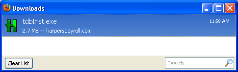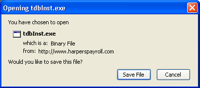 After you click the big green button at the bottom of this page that says "Click Here To Download Tax Update," you will see the following dialog. Click the "Save File" button.