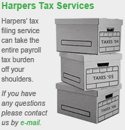 Harpers' tax filing service can take the entire payroll tax burden off your shoulders. Why should you be concerned about constant tax code modifications, ever changing deposit schedules and the introduction of new taxing agencies? Let the experts at Harpers Payroll Services take care of all your payroll tax needs.